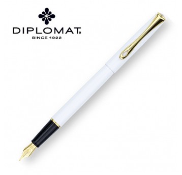 - Pióro wieczne niemieckiej marki DIPLOMAT z kolekcji Traveller, kolor biały z chromowanymi wykończeniami