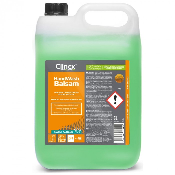 - Balsam przeznaczony do mycia naczyń kuchennych, ze szkła, metalu i tworzyw sztucznych - Nie pozostawia smug ani zacieków - Skutecznie usuwa tłuszcz i zabrudzenia - Produkt sprawdza się zarówno w zimnej jak i ciepłej wodzie - Zawiera ekstrakt z aloesu i glicerynę, składniki które skutecznie chronią nawilżają skórę dłoni - Produkt testowany dermatologicznie, jest dobrze tolerowany przez skórę, nie wykazuje właściwości drażniących, ani uczulających - Kompozycja zapachowa nie zawiera alergenów - Zastosowanie: do ręcznego mycia naczyń szklanych, porcelanowych, plastikowych i metalowych - Pojemność: 5l - Kolor płynu: zielony