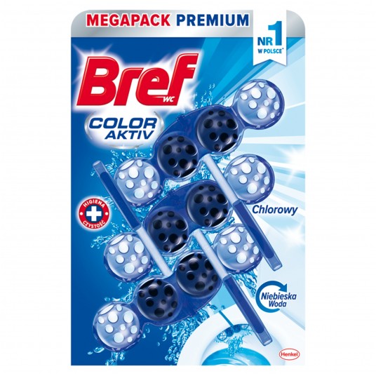 - Bref Color Aktiv Chlorine to środek myjąco-zapachowy w postaci zawieszki do muszli WC, która działa zarówno w trakcie każdego spłukania, jak i pomiędzy spłukaniami - Kostka chroni przed osadzaniem się kamienia w muszli, zapewniając jednocześnie długotrwałą świeżość o orzeźwiającym morskim zapachu - Barwienie wody na turkusowo potęguje wrażenie schludnej czystości we wnętrzu toalety - Bref Color Aktiv to doskonałe połączenie wyjątkowego zapachu i niezwykłej świeżości, które pomogą osiągnąć najwyższy standard higieny w łazience - Bref Premium to Najnowsza Linia zawieszek do toalet z 4-funkcyjną formułą zapewnia: - Skoncentrowany zapach gwarantujący świeżość - Środki chemiczne zapewniające higienę - Formuła chroniącą przed osadzaniem się kamienia - Pianę doskonale czyszczącą wnętrze muszli - 3 sztuki w zestawie - 3 x 50g - Zapach: chlorine