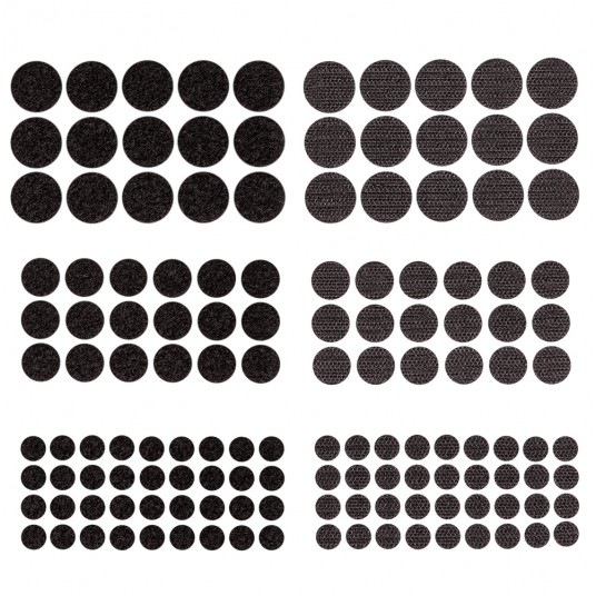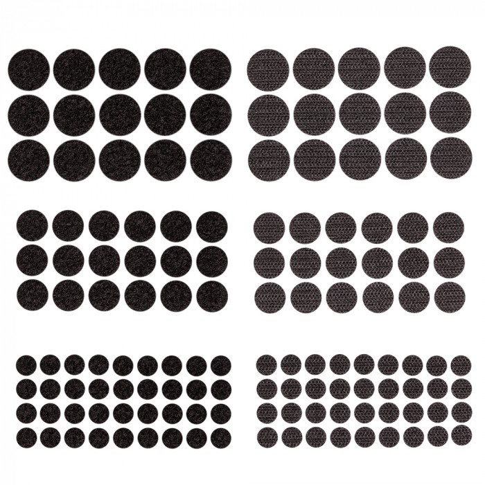 Rzepy samoprzylepne okrągłe, mix czarne, 69 sztuk