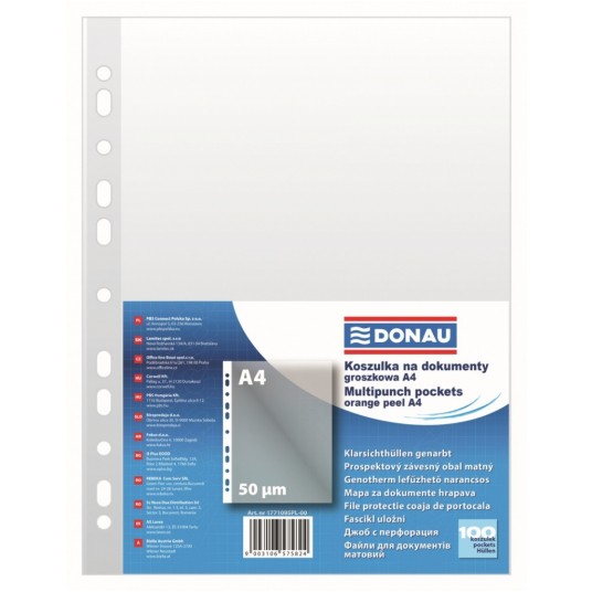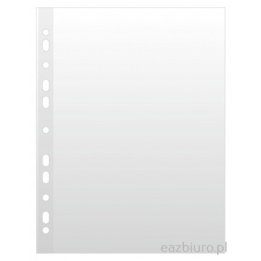 - Koszulki wykonane z miękkiej, ekologicznej folii polipropylenowej (50µm), specjalnie wzmocniony brzeg - Groszkowe, przeźroczyste - Otwarte na górze - Antyelektrostatyczne, antyrefleksyjne - Przeznaczone na dokumenty w formacie A4 - Ilość dziurek do wpięcia: 11 - Rozmiar: 230x300mm - 100 sztuk w j.s. - Kolor przeźroczysty