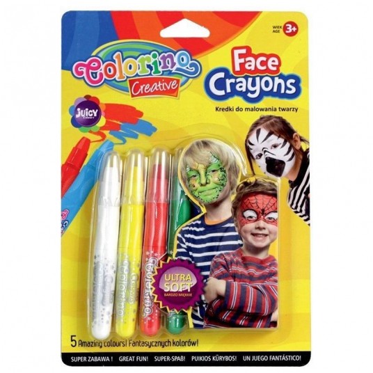 - Kredki do malowania twarzy w 5 intensywnych kolorach. - Idealne na zabawę karnawałową, przyjęcia urodzinowe, wydarzenia sportowe. - Specjalnie opracowana żelowa formuła sprawia, że kredki są bardzo miękkie, więc łatwo się je nakłada. - Dzięki plastikowej obudowie kredki nie brudzą rąk. - Bezpieczne dla skóry. - Zmywalne za pomocą wody i delikatnego mydła. - Zestaw 5 sztuk.