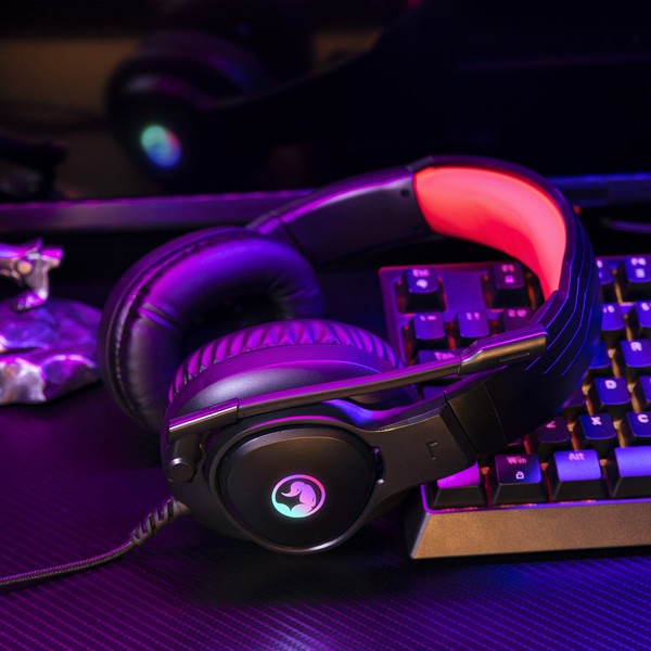 - Konstrukcja zapewnia stabilne ułożenie na głowie gracza, dobre ale nie zbyt mocne dociśnięcie słuchawek do głowy