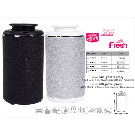 Esencja zapachu iFresh to skondensowana baza zapachowa przeznaczona do wykorzystania w dyfuzorach marki Kala iFresh oraz dyfuzorach innych firm. Dyfuzja to najlepszy sposób na aromatyzację przestrzeni a dzięki produktom Kala iFresh w pełni zautomatyzowany, wygodny i niedrogi.