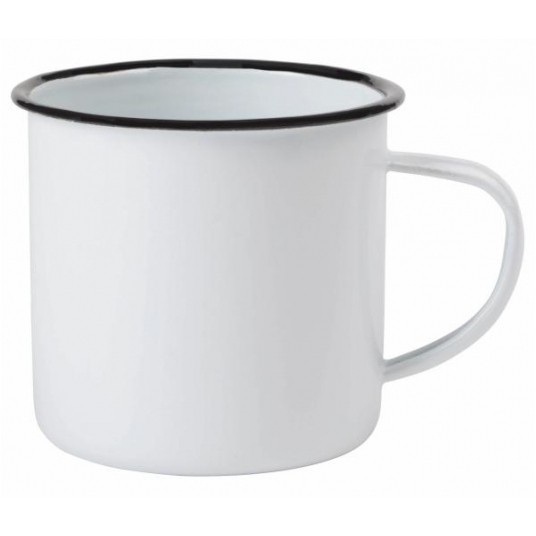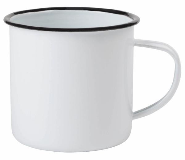 - Kubek emaliowany RETRO CUP z uchwytem w kolorze kubka - Biały wewnątrz - Pojemność ok. 350 ml - Kolor: biały - Rozmiar: fi=9 x 8 cm - Materiał: Żelazo emaliowane