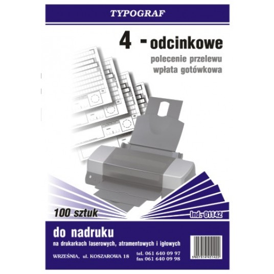 Druk 4-odcinkowe polecenie przelewu - wpłata gotówkowa A4 Typograf