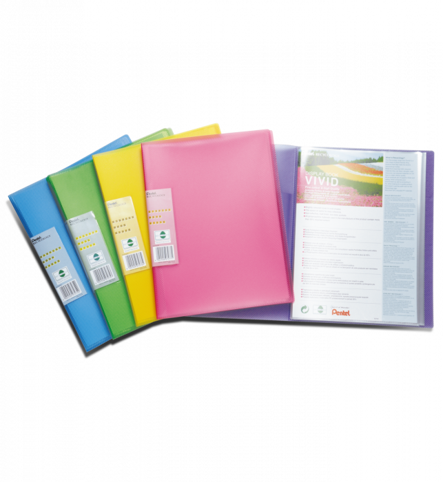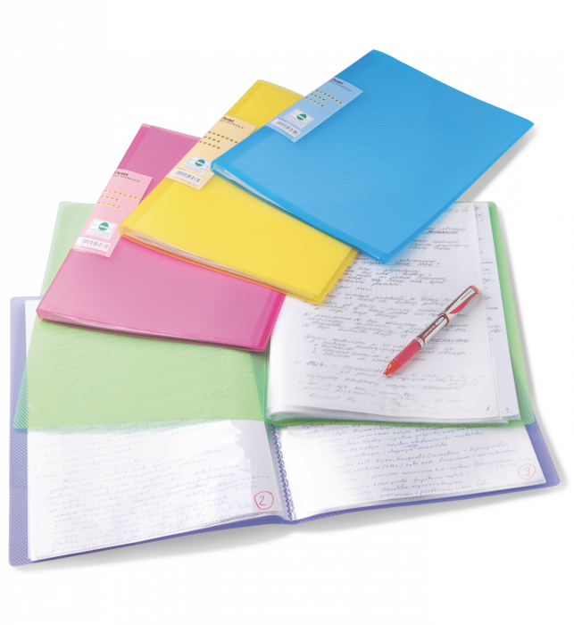Eksplozja kolorów na Twoim biurku! Prążkowana okładka w jaskrawych odcieniach. Etykieta na grzbiecie albumu umożliwiająca jego opisanie. Matowe, nie powodujące odblasku, antystatyczne, wysoko przezroczyste koszulki. Wykonany w ponad 50% z materiałów przetworzonych