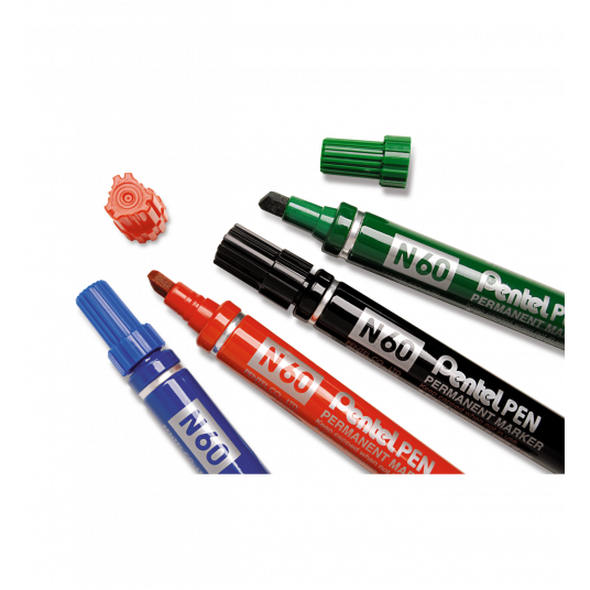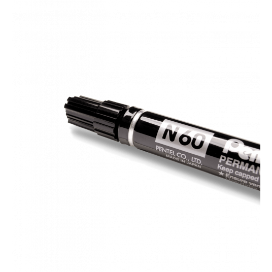 Marker wodoodporny, ze ściętą końcówką. Nadaje się na każdą powierzchnię: metal, szkło, plastik, gumę i gruby papier. Wyjątkowo trwała końcówka odporna na odkształcanie. Hermetycznie foliowany. Do wyboru kolor: czarny, czerwony, niebieski, zielony.