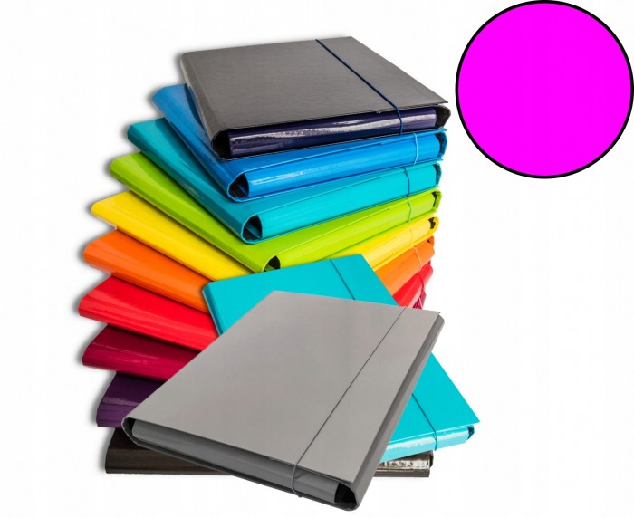 - Teczka skrzydłowa z gumką, wykonana z grubej tektury - Powlekana folią polipropylenową z czarną lub białą wyklejką w środku - Wyposażona w gumkę wzdłuż długiego boku - Posiada trzy wewnętrzne klapki zabezpieczające dokumenty przed wypadnięciem - Dostępna w jedenastu kolorach: turkusowym, granatowym, niebieskim, czerwonym, fioletowym, zielonym, czarnym, żółtym, pomarańczowym, różowym i CAŁKIEM NOWY SZARYM - Format: A4 - Dostępna z grzbietem 3,5 cm