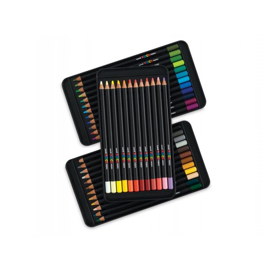 - Kredki ołówkowe POSCA nadają się zarówno dla amatorów, jak i doświadczonych artystów - Łatwość użycia w połączeniu z unikalną recepturą sprawia, że jest to niezawodne narzędzie twórcze dla studentów sztuk pięknych, ilustratorów, projektantów, architektów, kreatywnych artystów i wszystkich miłośników rysowania - Kredki Posca Pencil są grube, wytrzymałe i niesamowicie napigmentowane - Twardość grafitu pozwala na mocne dociśnięcie kredki do papieru, co umożliwia maksymalne wydobycie koloru - Ich wyjątkowo nasycone, naturalne pigmenty pozwalają uzyskać aż 6 poziomów intensywności - Nadają się do stosowania na jasnym i ciemnym papierze i mogą być używane zarówno z wodą, jak i terpentyną, aby stworzyć niekończące się efekty - Zapakowane w estetyczne metalowe etui - 36 kolorów w opakowaniu
