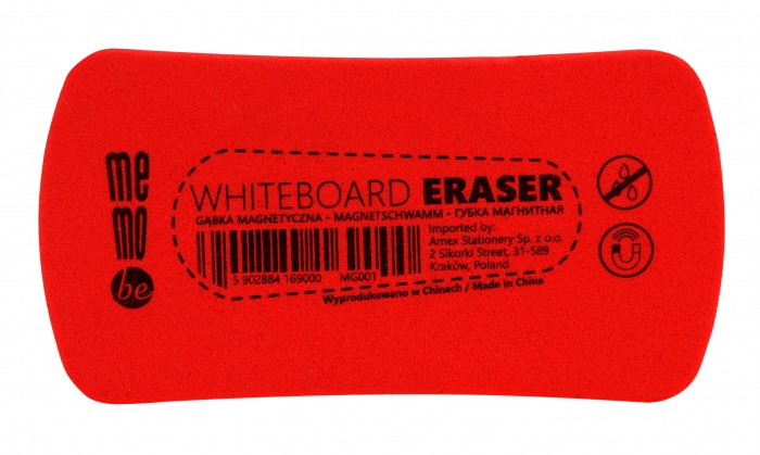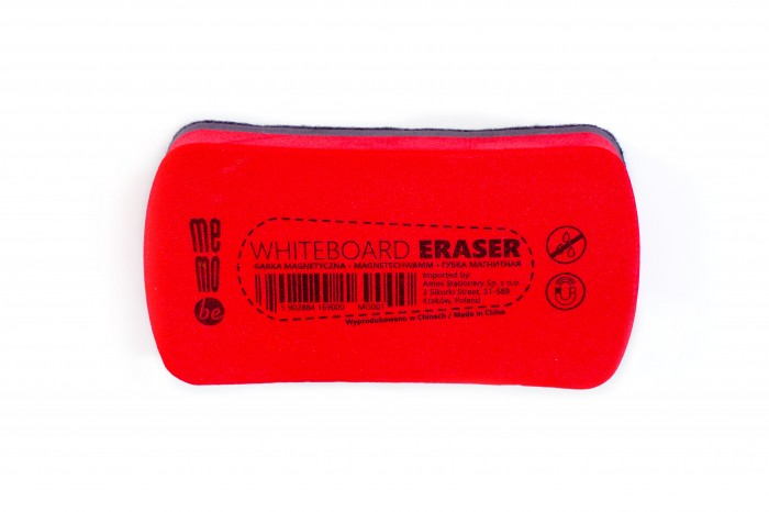 Gąbka MemoBe do czyszczenia tablic suchościeralno-magnetycznych z wbudowanym wewnątrz magnesem, dzięki któremu gąbka jest zawsze pod ręką. Poręczny piankowy uchwyt o ergonomicznym kształcie gwarantuje komfort użytkowania, a miękka filcowa warstwa czyszcząca zapewnia dokładne czyszczenie.